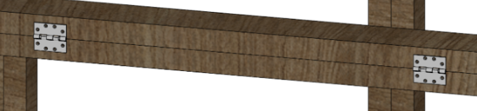 With the full wooden structure assembled, we shifted to hardware. We placed the hinges along the back, lined them up across two connecting wood pieces, marked the pilot holes, drilled them, and then screwed the hinges into place. We repeated the same process for installing the hinges on the doors.