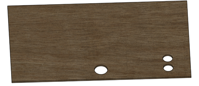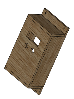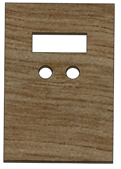 To make the electronics enclosure, we cut the seven pieces. We started by drilling hanging holes, placed near the top edge so the enclosure could mount onto the back of the house. Next, we worked on the front face. Using both a drill and a router, we created the cutout for the display screen. We drilled a hole in each corner of the intended rectangle to make openings big enough for the router bit to enter, then routed out the full shape. We also drilled holes for the potentiometer and mounting bolts.