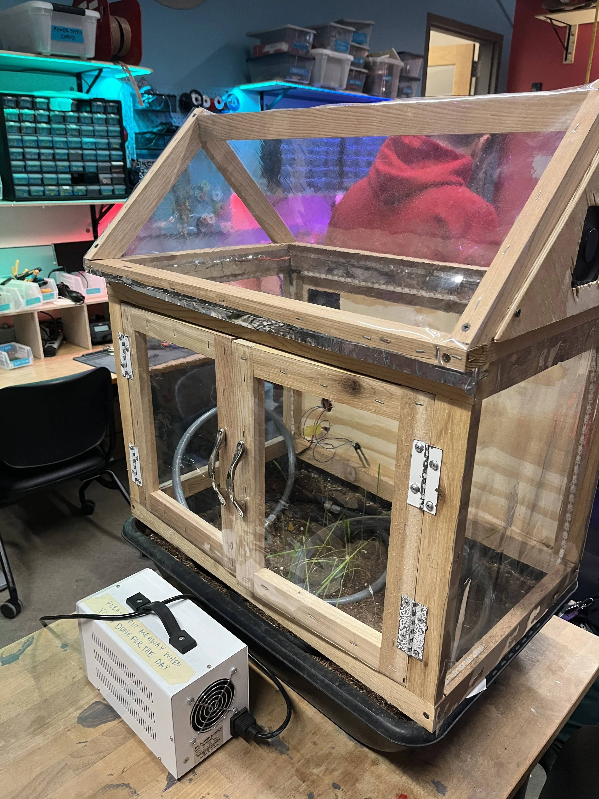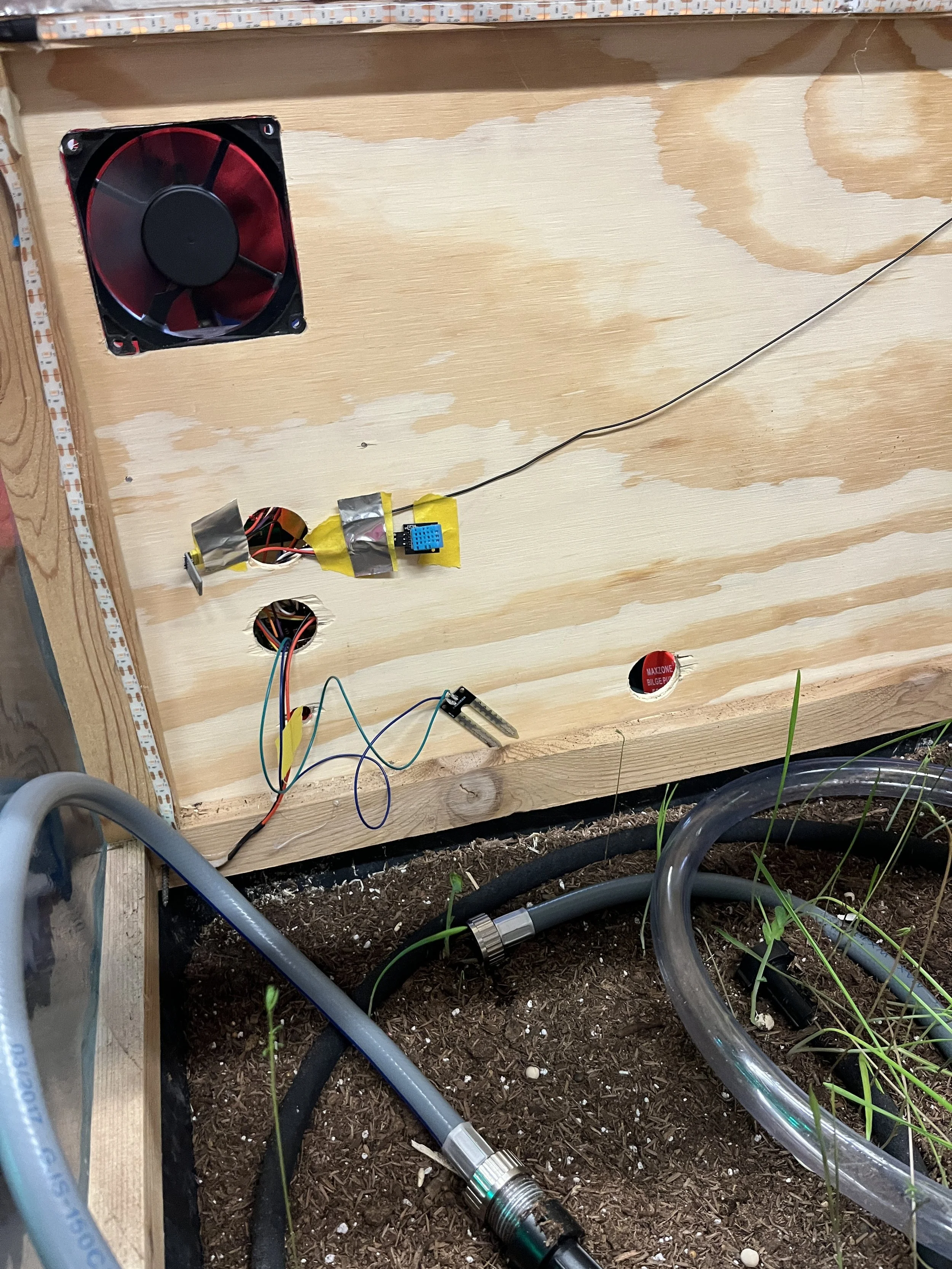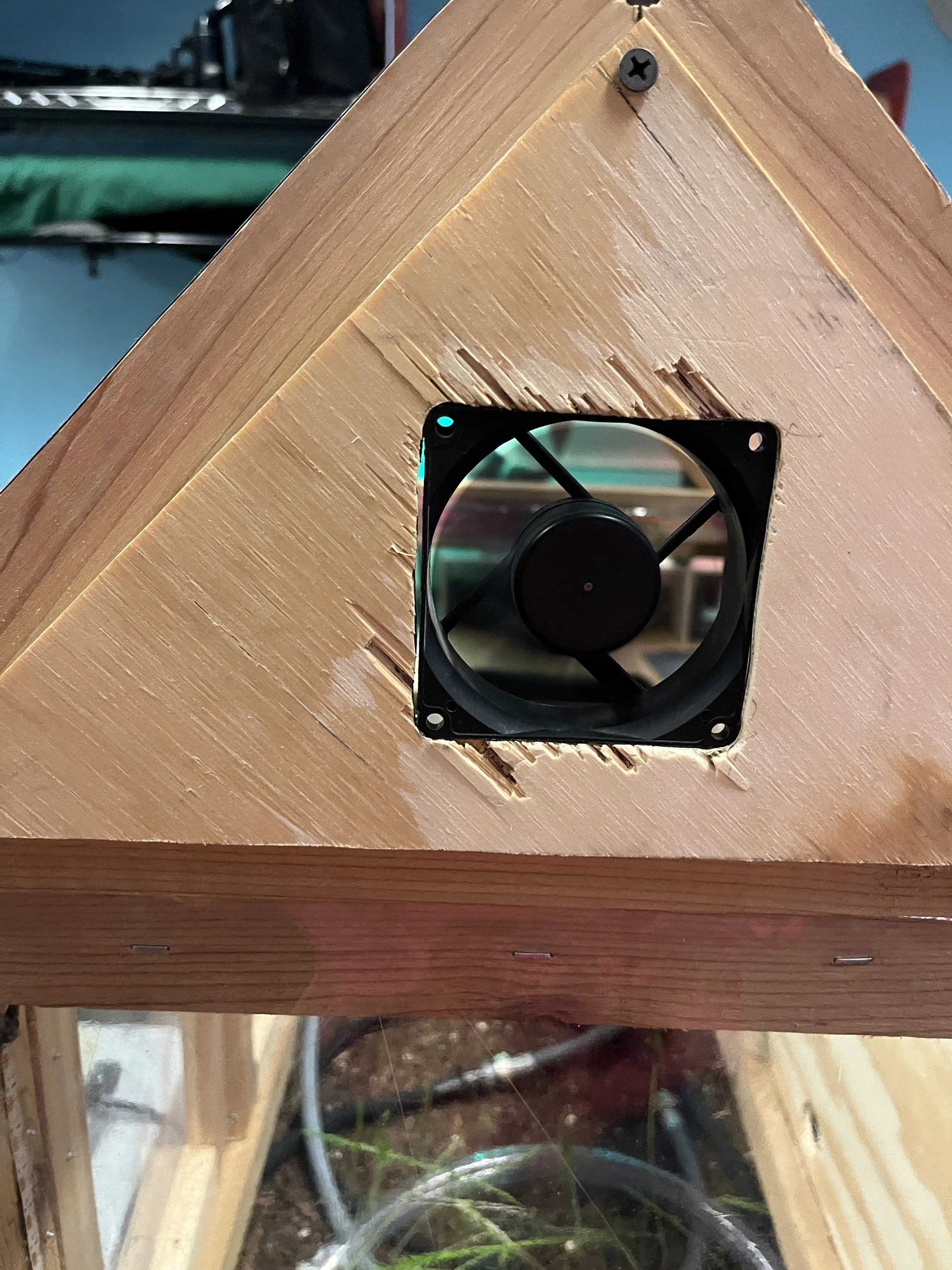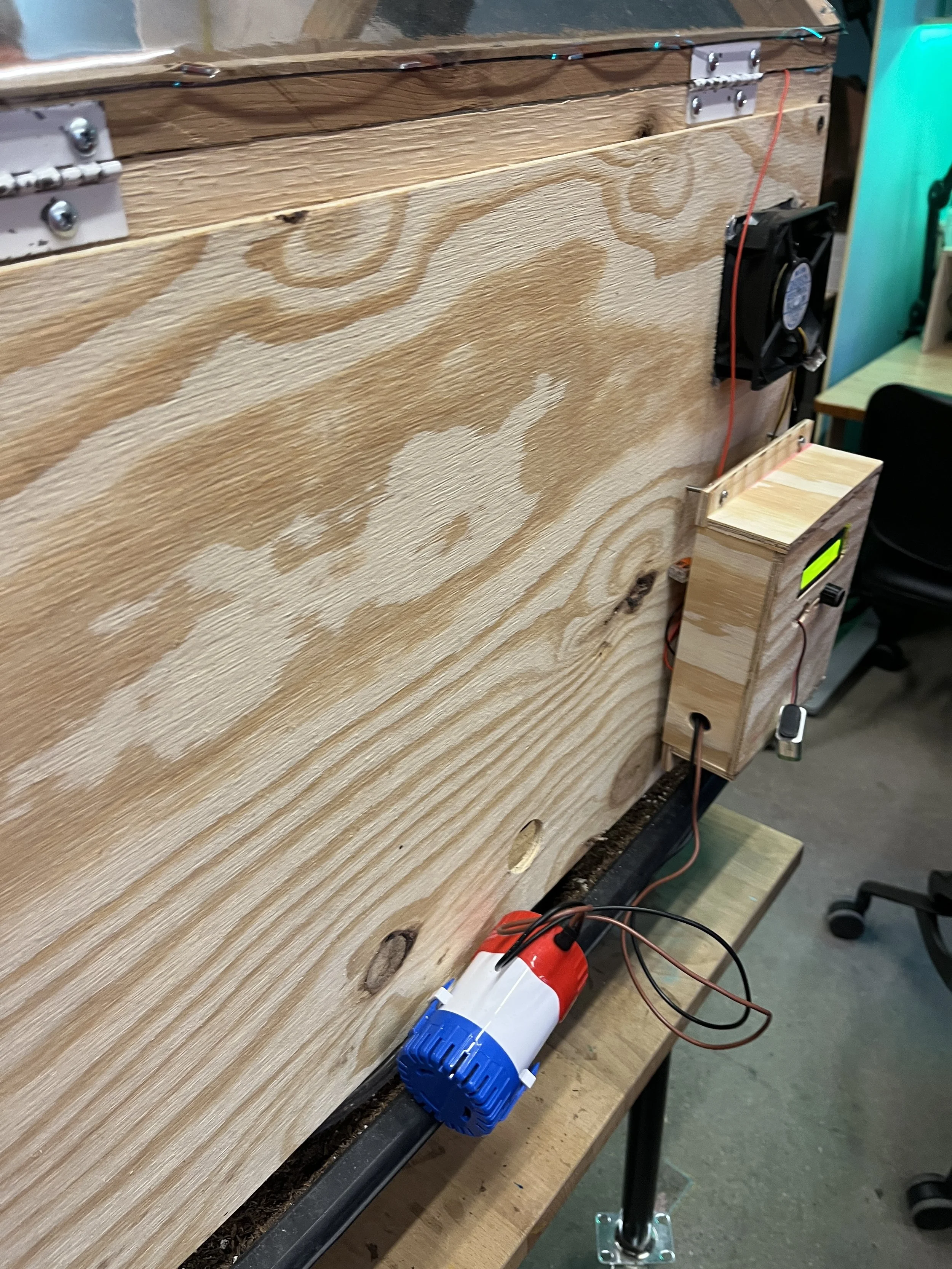 I mounted the electronics enclosure onto the greenhouse, plugged all components in, and did a final pass to ensure everything was secure and functioning properly.