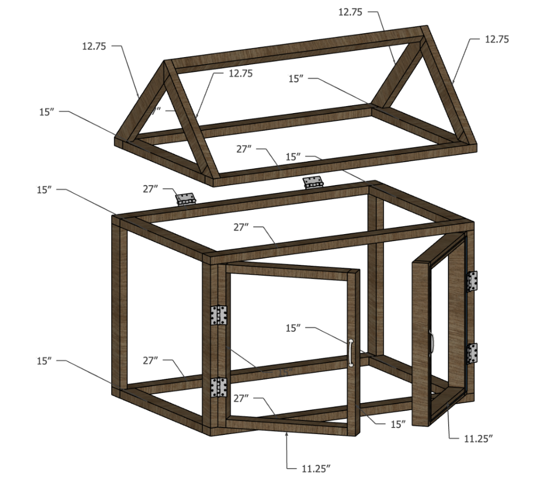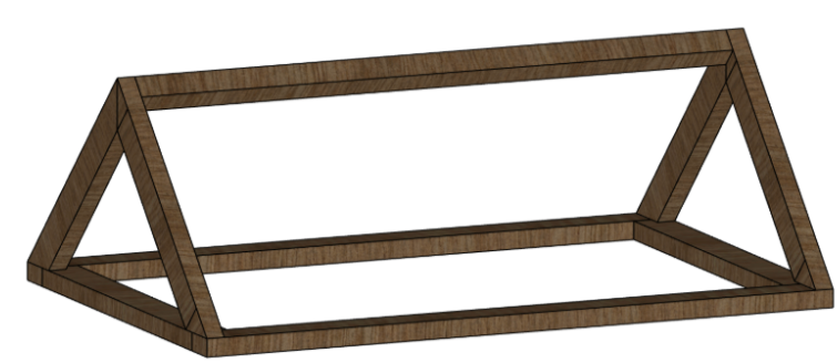 We then attached these triangles to the top rectangle from earlier, again using the pilot-hole-and-screw method. Once the triangles were secured, We added the 25.5” piece across the top to complete the roof ridge.