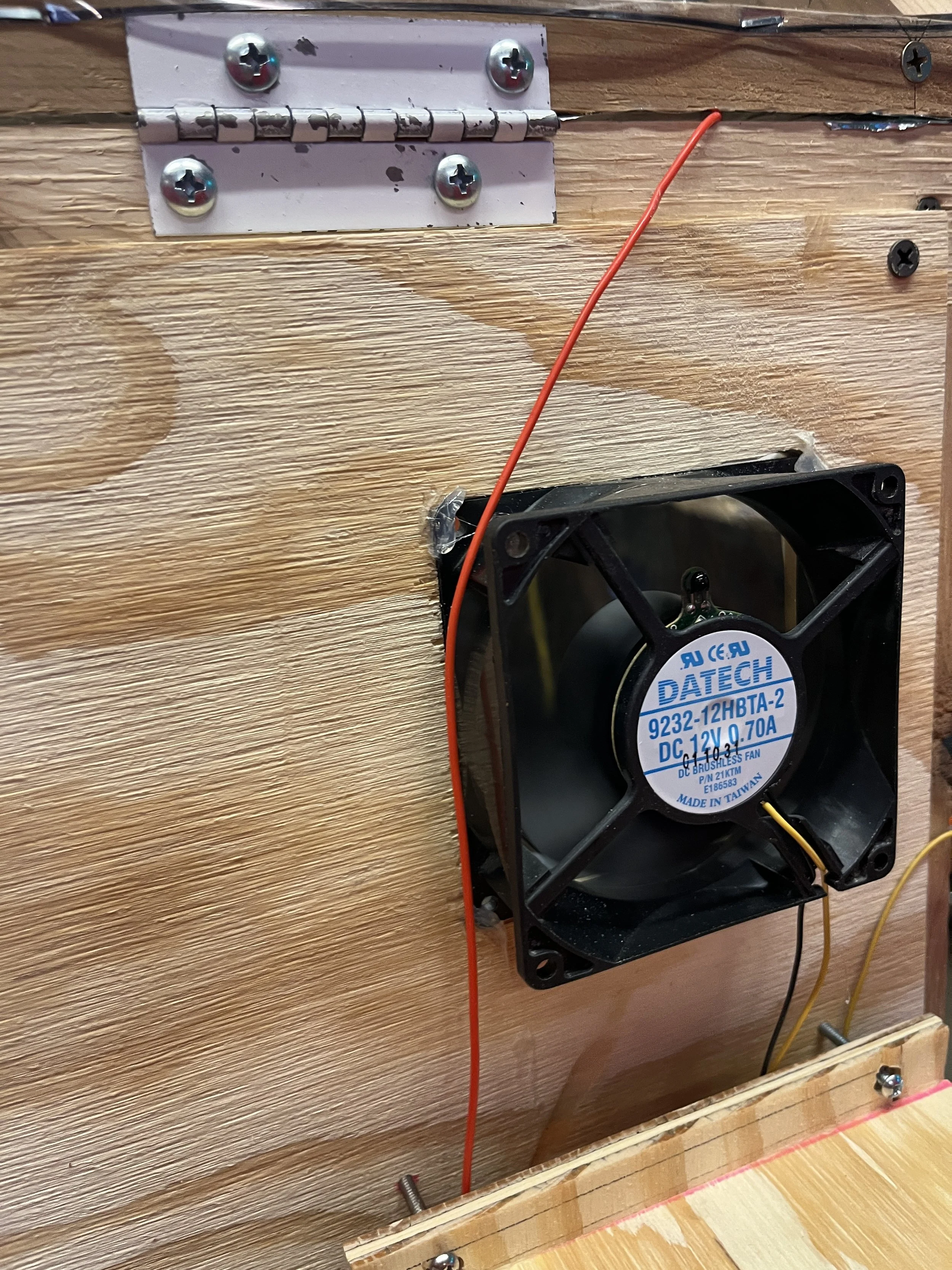 Electronics enclosure access and sturdiness: The current electronics set up is an open backed box that has holes sliding onto screws to be taken off when needed. This is possibly a problematic design as it is hard to access the electronics to attach and to modify. In the future the front or the side should probably be a hinged door to access the wires in a safer and easier way. Another problem is that we put plywood on the back of the greenhouse for the possibility of it being mounted. The box was put on the back so as to not block lighting from the clear vinyl for the greenhouse. Those two decisions together contradict each other, as now it is not mountable with a box on the back. It would probably have to be moved in a future build so that the greenhouse can be moved or pushed flush against a wall.